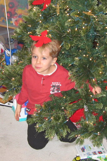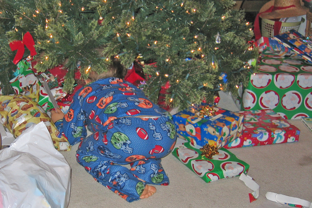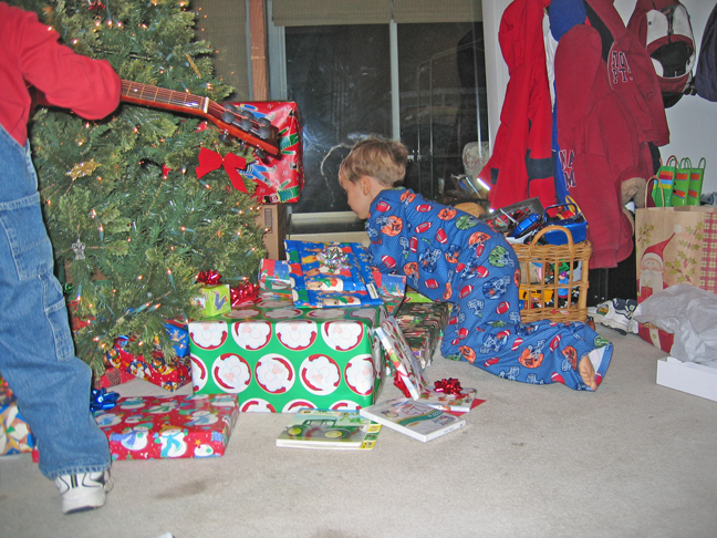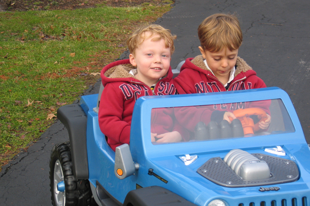 (Above, and below) Santa's big hit this year was an electric car, which Ben and Chris have been taking all around the neighborhood!