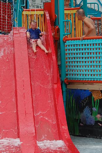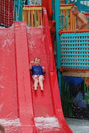 At Hershey Park, Chris's favorite attraction by far was the water slides! (On the right is Marsha's longtime friend, Mark.) |